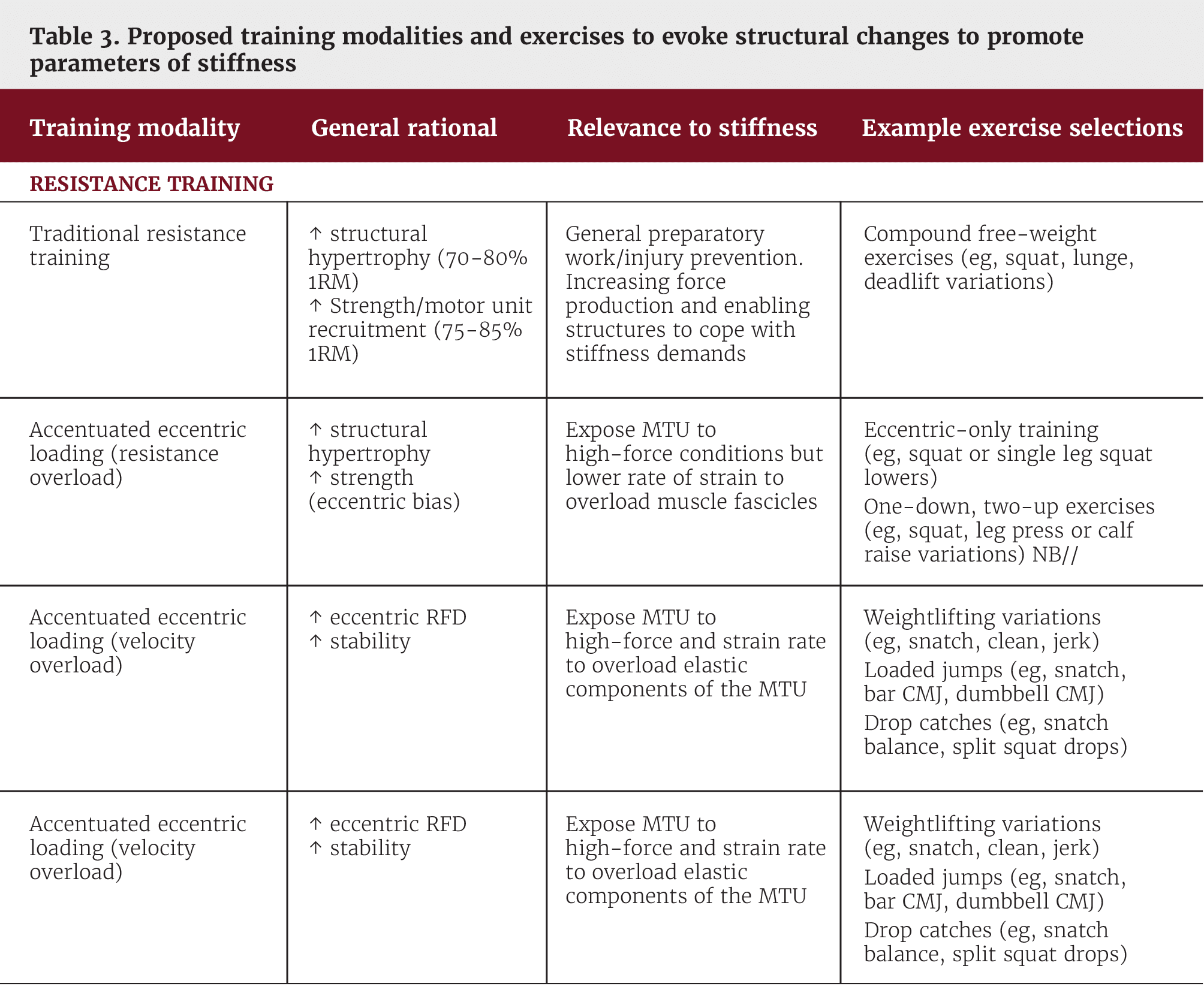 Structural adaptations lay the foundation for the body’s systems to stiffen effectively under load and form the basis for reducing injury risk. Thus, when structural changes are needed to enhance stiffness, it is recommended that these be prioritised early in any programme. The sequence of exercise modalities outlined here is recommended within a linear periodised plan; of course, this is not to say that this is the only approach that coaches can effectively employ.
