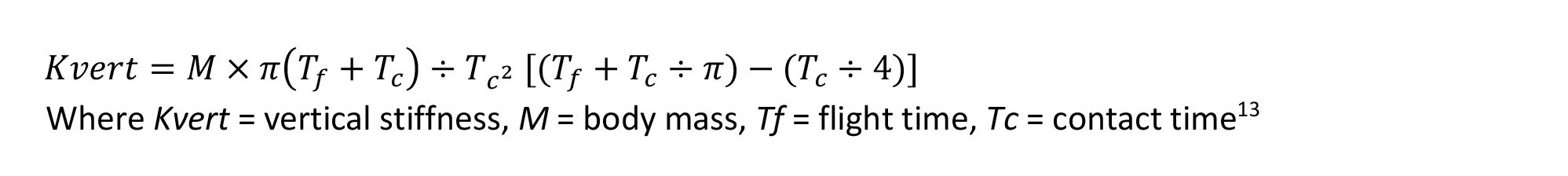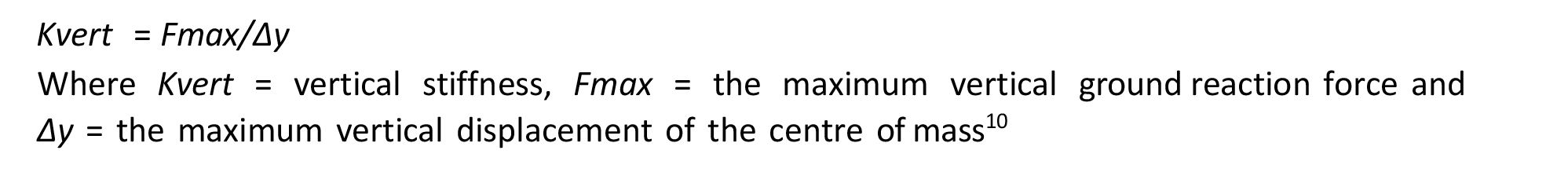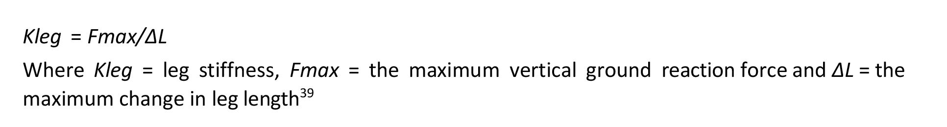 Where Kleg = leg stiffness, Fmax = the maximum vertical ground reaction force and ΔL = the maximum change in leg length39